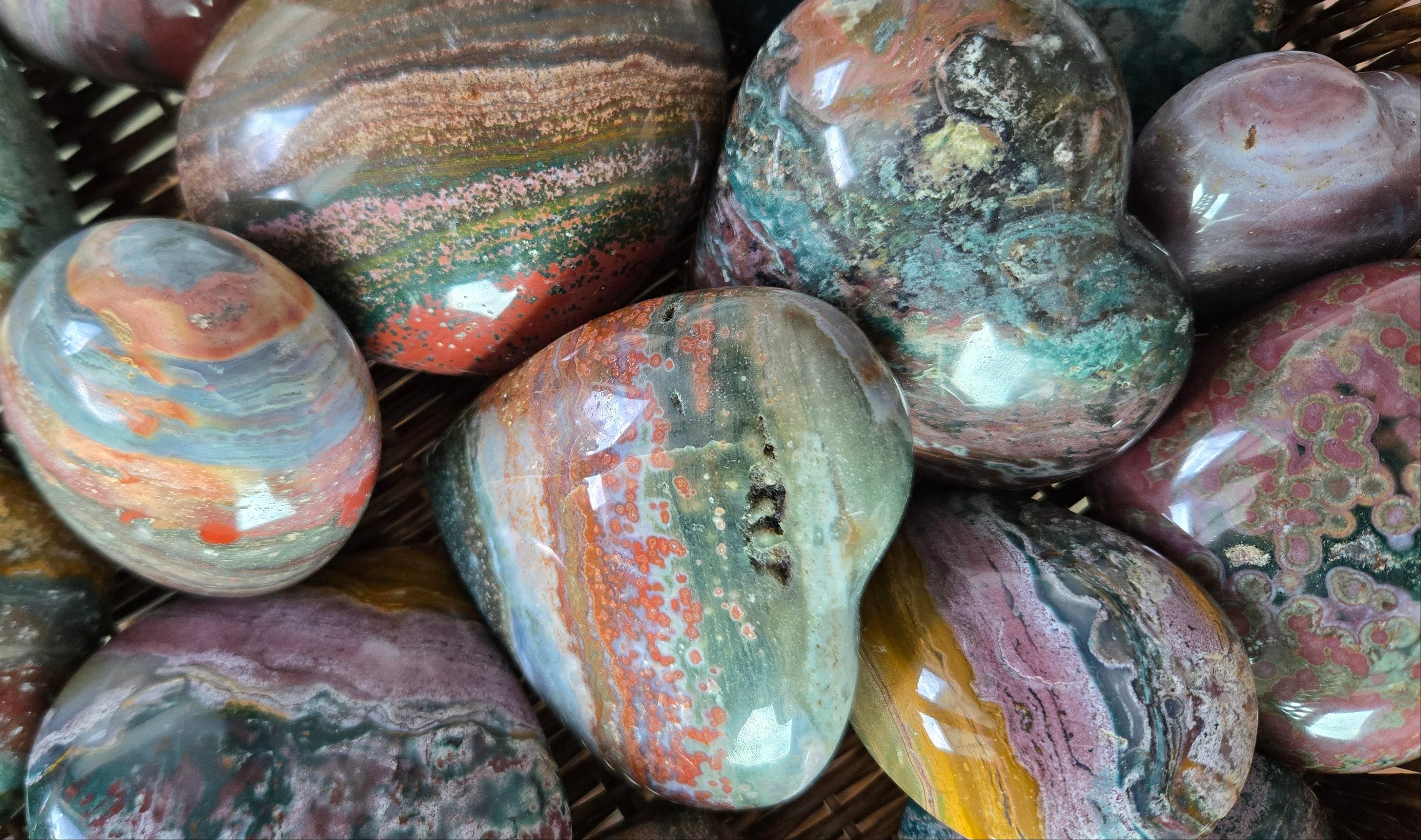 Item as described, fast shipping & carefully packaged. This colorful palm stone has good clarity with prominent banding. Excellent customer service, the seller was extremely helpful & responsive. I am really happy with my purchase and thank you for the free gifts.