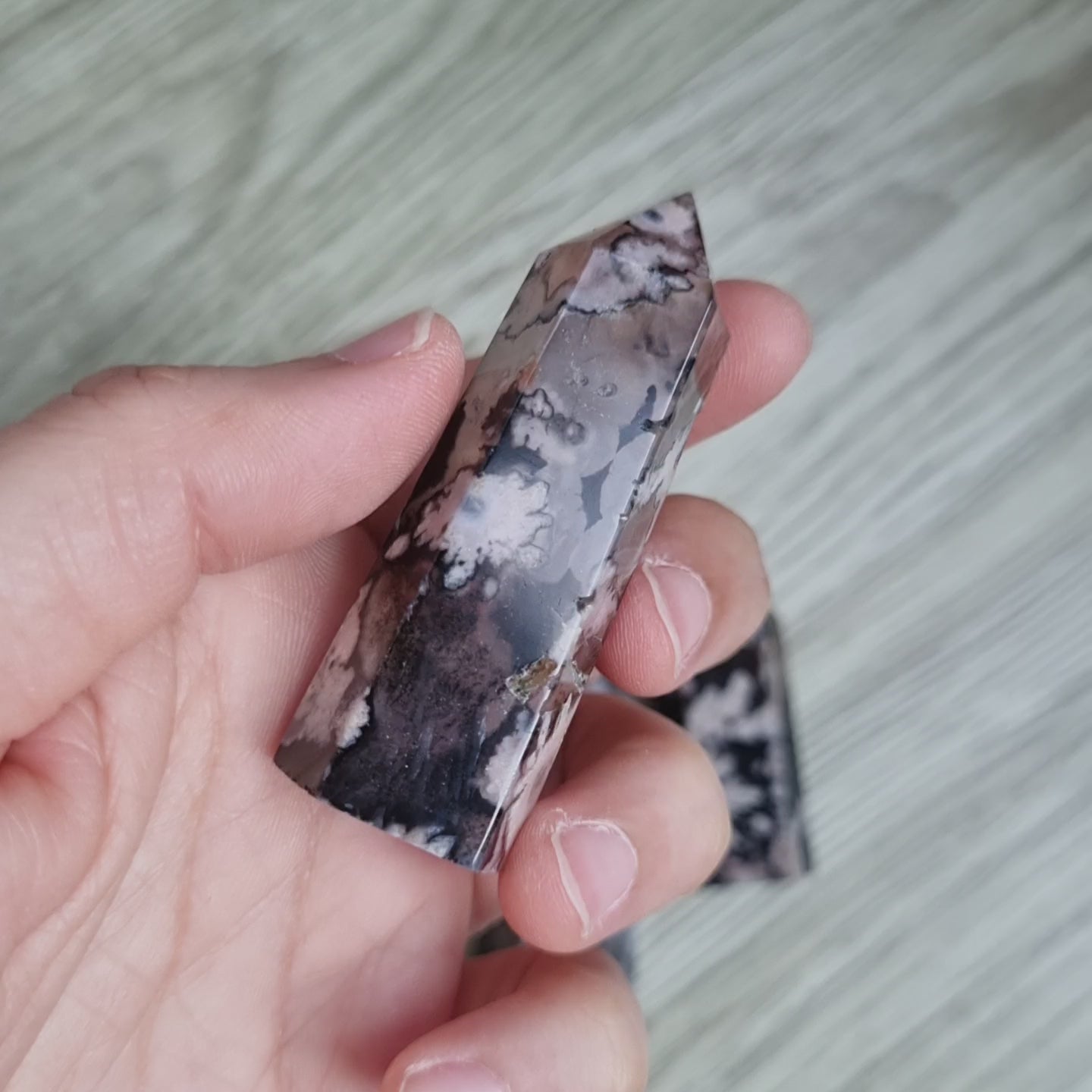Black flower agate is known to encourage self growth, motivation and emotional balance. It's known for its calming, soothing effect on the mind, helps reduce stress, anxiety. Will make a great piece for home or office decor.