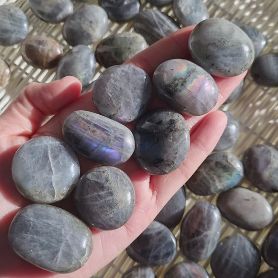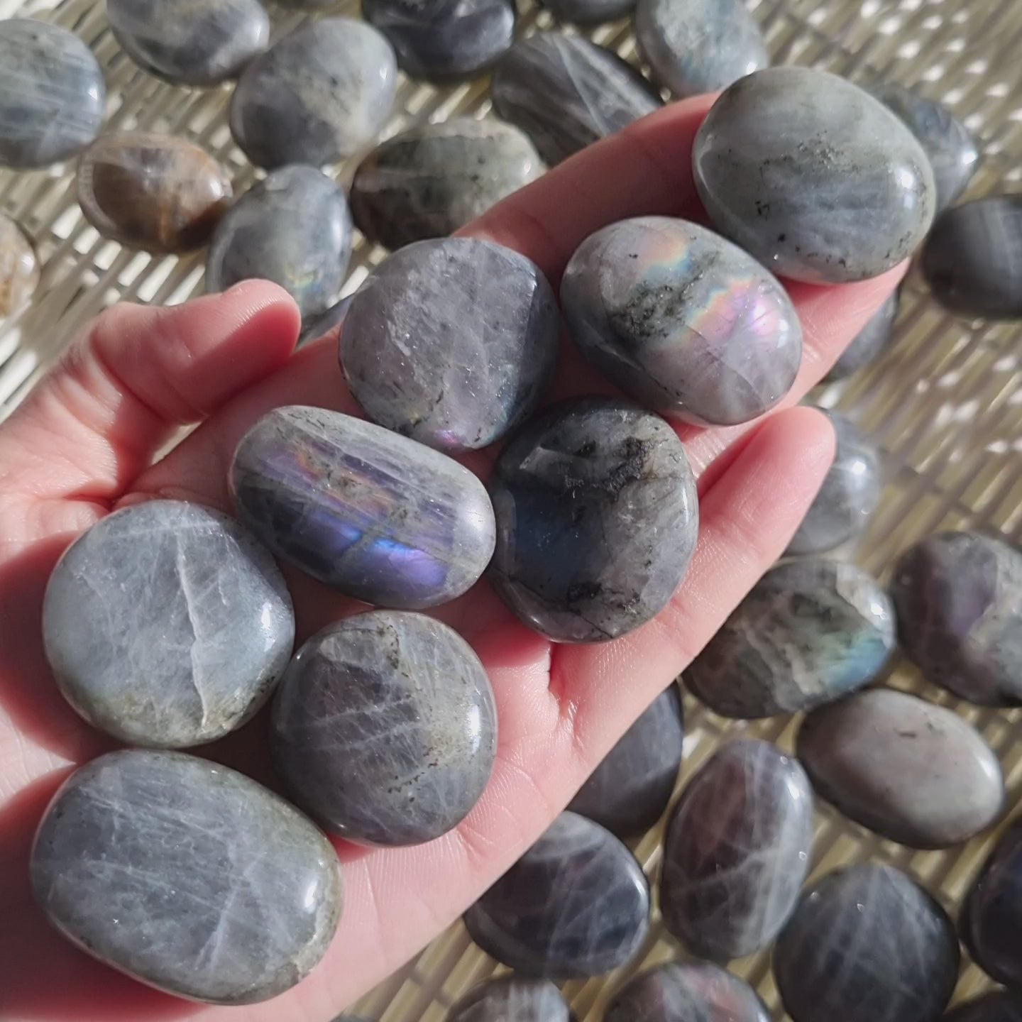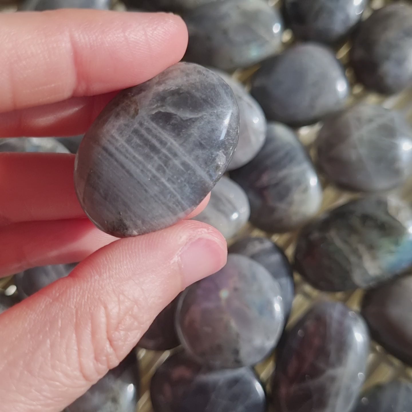 Labradorite is a feldspar mineral known for its stunning optical effect called labradorescence, a shimmering play of iridescent blues, greens, golds, and other colors caused by light diffraction within its layers, resembling the Northern Lights. Discovered in Labrador, Canada, this gray/black stone (hardness 6-6.5) is valued as a gemstone and believed to enhance intuition and provide protection, often cut into rounded cabochons to display its unique flash.