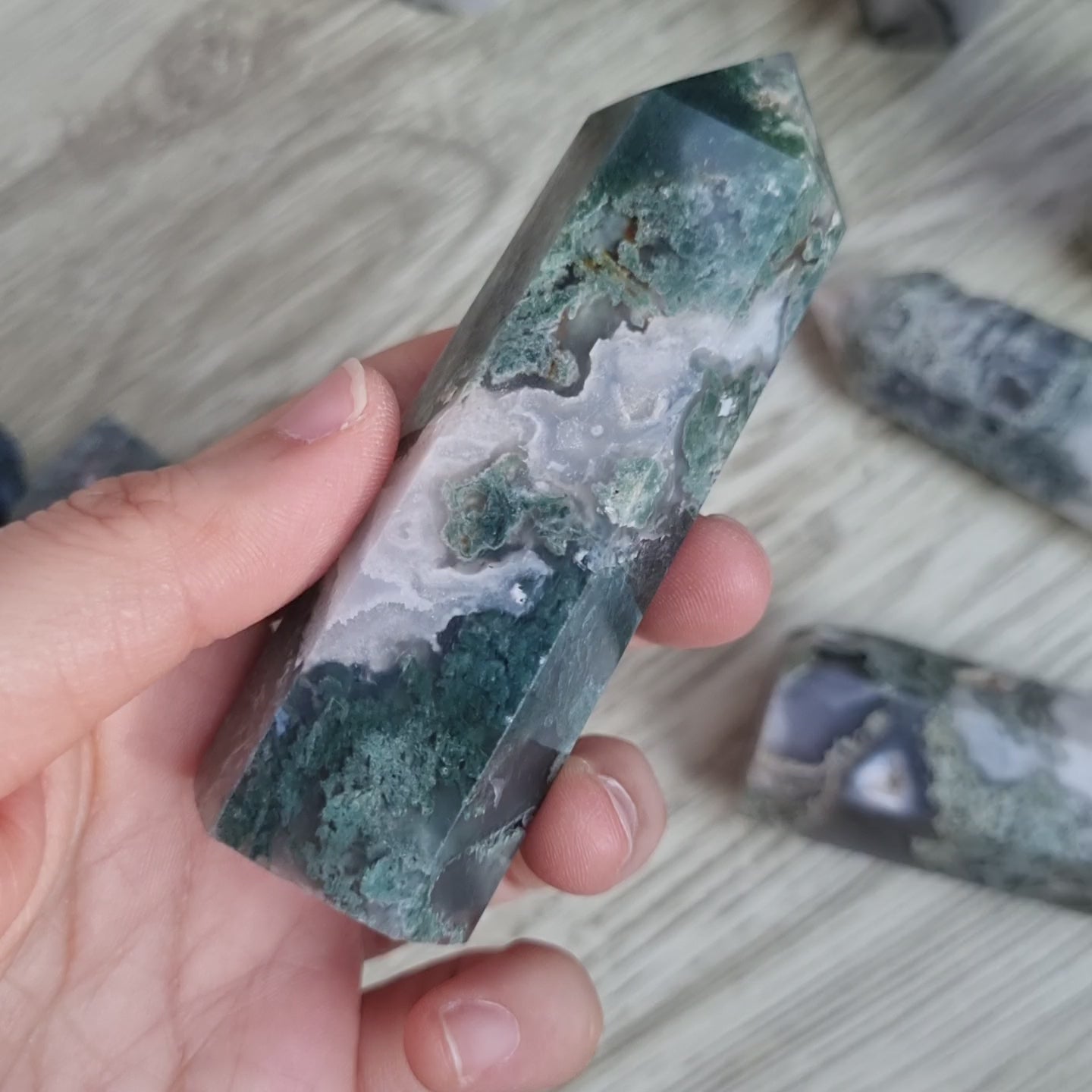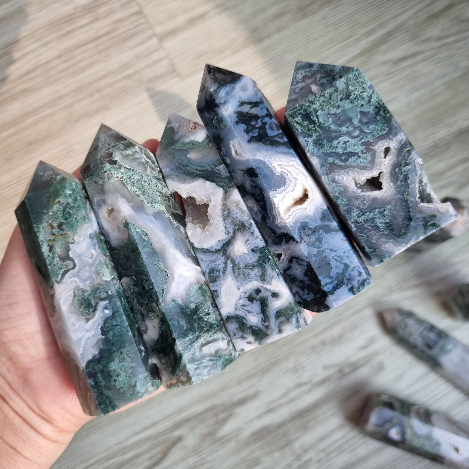 Moss agate is a semi-precious stone, a type of chalcedony (silicon dioxide), known for its green, brown, or red dendritic inclusions that resemble moss, trees, or landscapes, formed by iron or manganese oxides within clear or milky quartz, not actual organic moss, offering grounding and growth-related metaphysical properties. Though technically not a banded agate, its name stuck due to its appearance, and it's popular in jewelry for its unique, nature-inspired patterns.